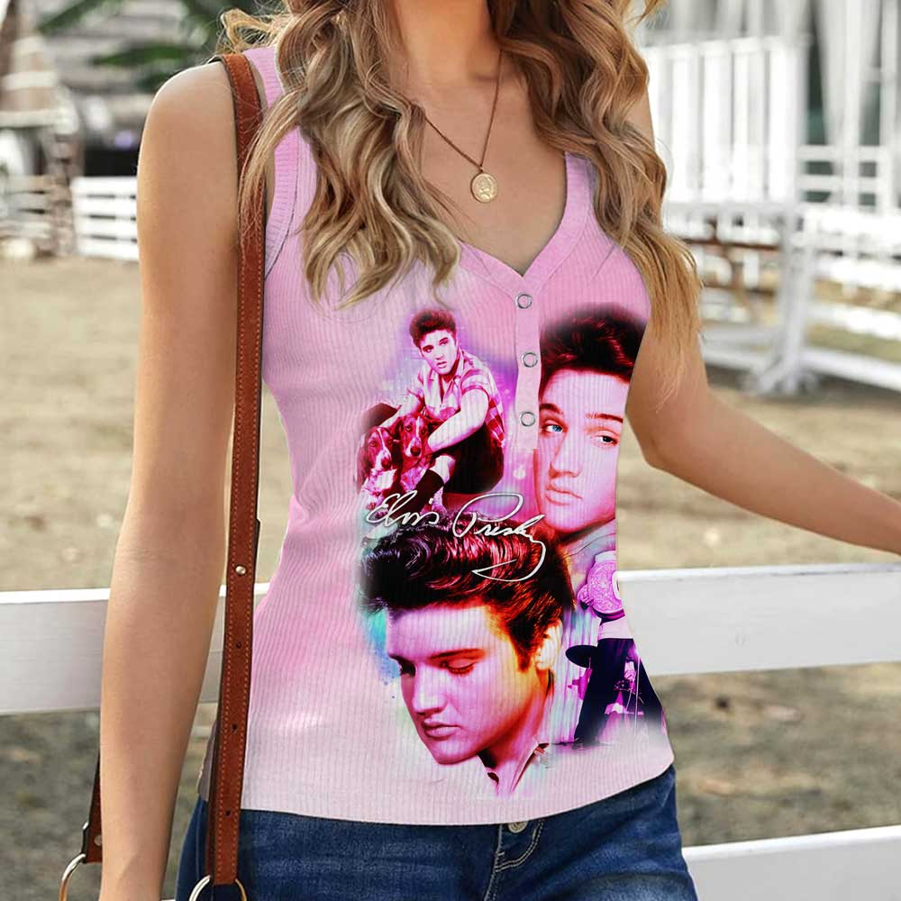 Elvis Presley Women V-Neck Ribbed Tank Top – VANDH 3050